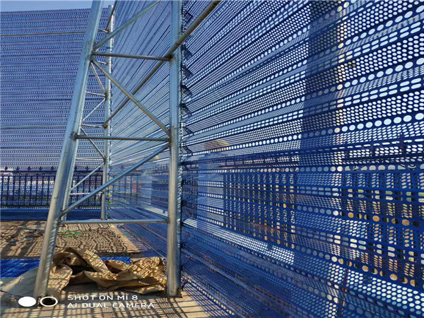 鋁板防風(fēng)抑塵網(wǎng) 鋁板防風(fēng)抑塵網(wǎng)在經(jīng)營(yíng)過(guò)程中,露天堆放的料場(chǎng)及沒(méi)有蓋蓬蓋的運(yùn)輸車(chē)輛產(chǎn)生很大的粉塵,