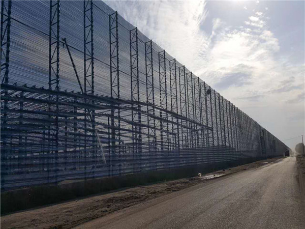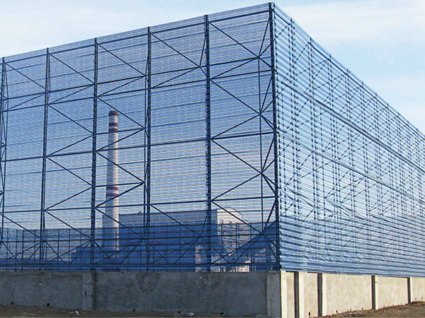 煤場(chǎng)防風(fēng)抑塵網(wǎng) 露天煤場(chǎng)防風(fēng)抑塵網(wǎng)又叫防風(fēng)抑塵墻,擋風(fēng)墻,抑塵墻,擋風(fēng)抑塵墻。 材質(zhì):低碳鋼板、